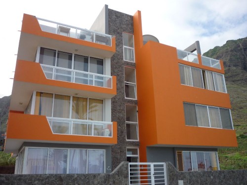 Modern one bedroom accommodation of European standard 53 squared meters (m2) at the entry to the town Ponta do Sol with very unique setting with impressive Sea-Mountain & Sunset, local city views from living room, bedroom and the common roof terrace.